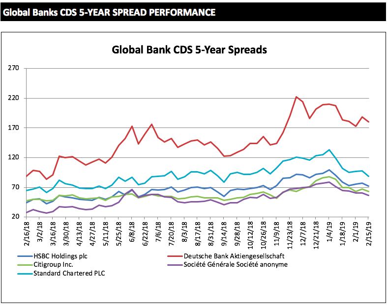 In partnership with S&P Global Market Intelligence, CT provides a regular snapshot of the most recent movements in bank credit default swap spreads (CDS).