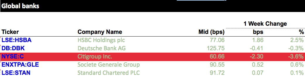 In partnership with S&P Global Market Intelligence, CT provides a regular snapshot of the most recent movements in bank credit default swap spreads (CDS).