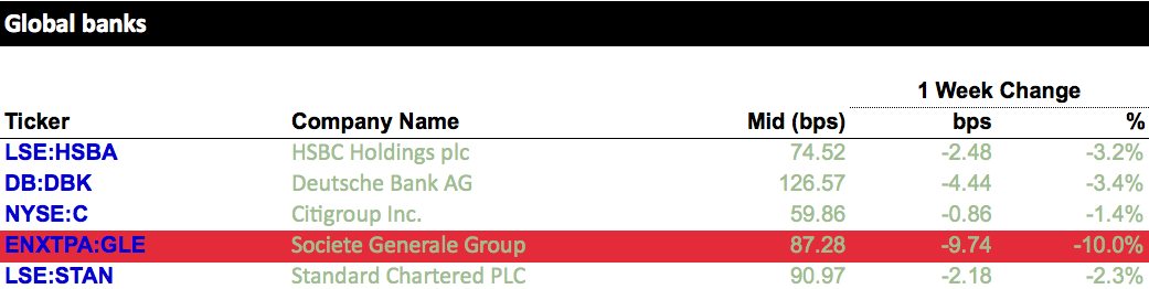 In partnership with S&P Global Market Intelligence, CT provides a regular snapshot of the most recent movements in bank credit default swap spreads (CDS).