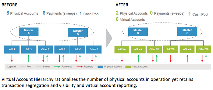 Corporates are able to also move from physical to virtual accounts, and back, while still being able to retain their account number, an important feature for acquisitive clients or those undertaking a divesture.