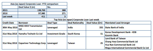 The latest corporate Asian loan volumes and deal rankings in the region, provided by Dealogic as of Tuesday, June 7. The data is used as a guide of credit appetite amongst the region's lenders.